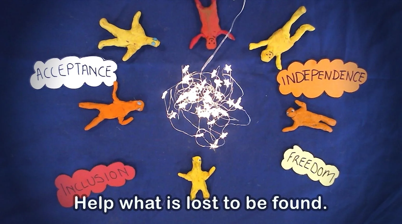 The 3 individuals who made this film, ‘Right to Dream’ were so committed to learning something new and presenting their own poem to the world in a different way that they overcame all their difficulties. We used tactile grids hidden below any artwork so participants could feel where objects and shapes were. They moved characters around with the grid to guide the direction and distance.